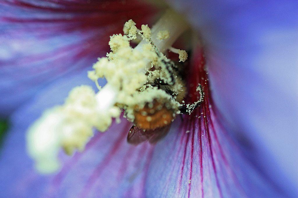 | C'est pas simple pour un gros bourdon de rentrer à l'intérieur. | |
