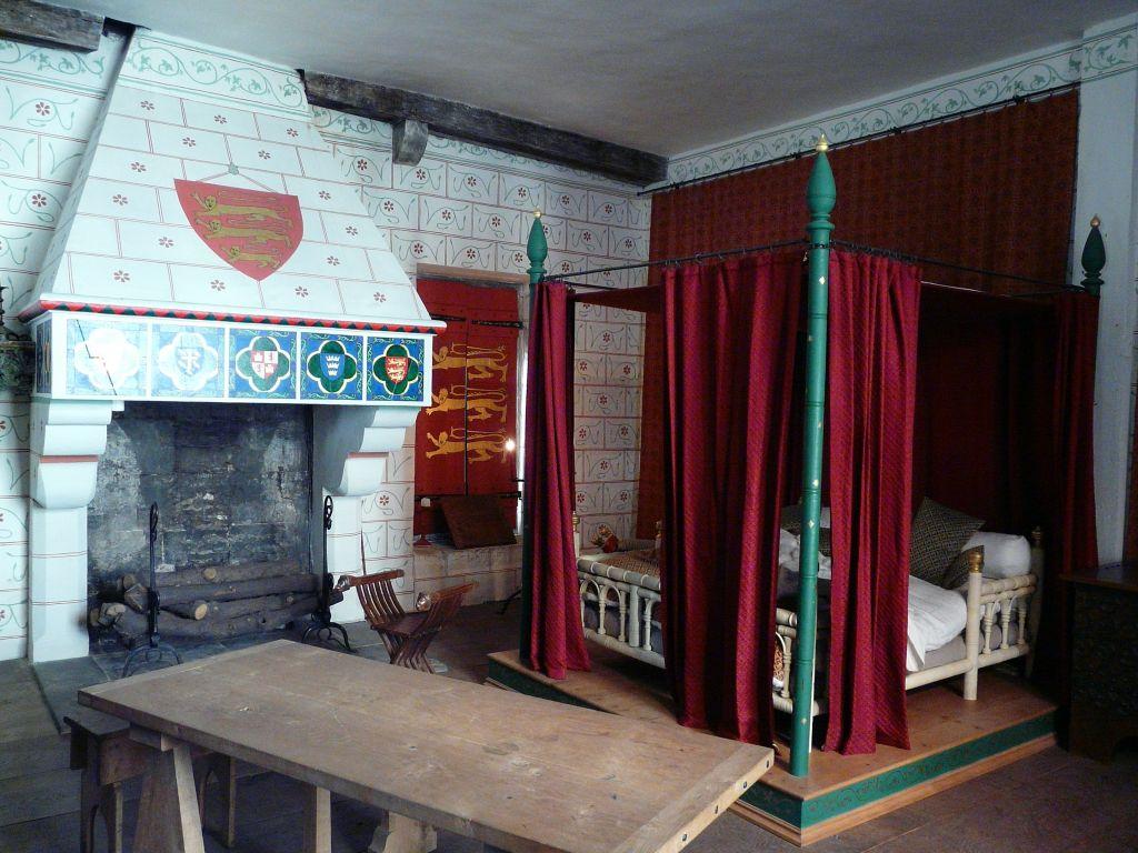 | Le palais médiéval.Au moyen-âge, les pièces avaient plusieurs fonctions à la fois : les tables étaient démontées une fois le repas terminé et les meubles étaient déplacés comme nécessaire. | |