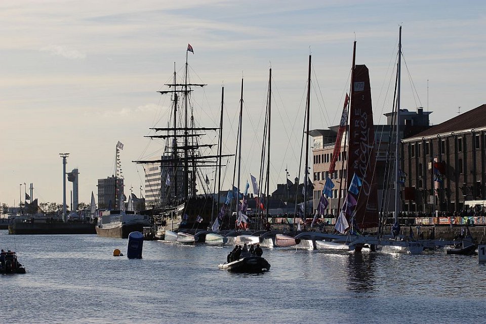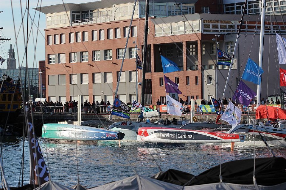 IMG 3108  La Transat Jacques Vabre est indissociable de sa ville de départ : le Havre. Au fil des éditions, le port normand a tissé des liens forts avec les coureurs, a développé des infrastructures autour des anciens docks du port de commerce et réaffirme chaque jour sa volonté d’être une cité maritime. IMG 3109  3 novembre, 13h02 : départ de la 11ème Transat Jacques Vabre IMG 3111  Les anciens sont là ausis. IMG 3173  Maitre