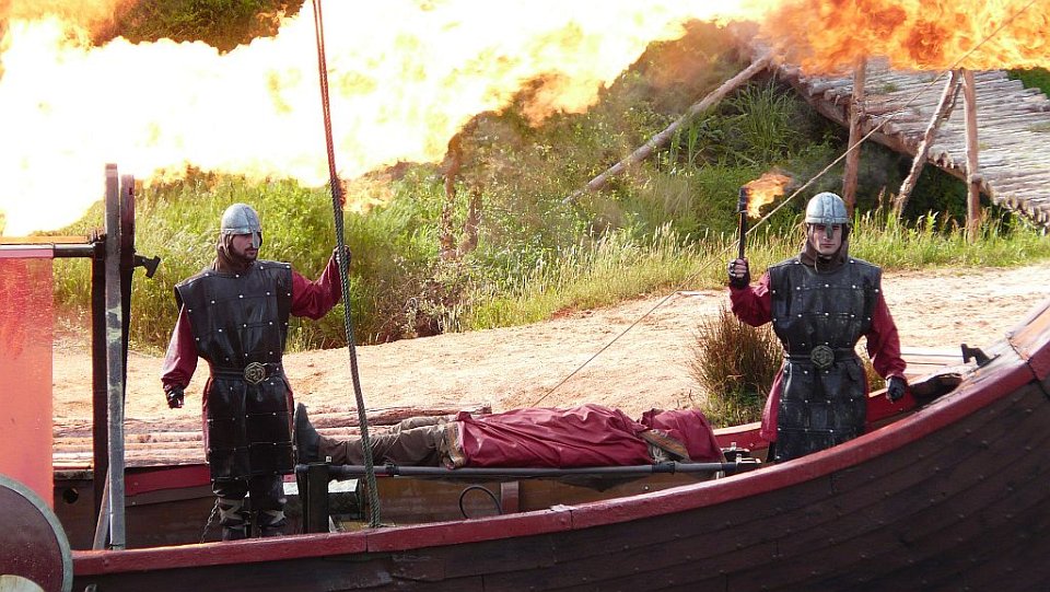 14 et les vikings immolant leurs morts comme le veux la tradition disparaissent alors dans les flôts. |
