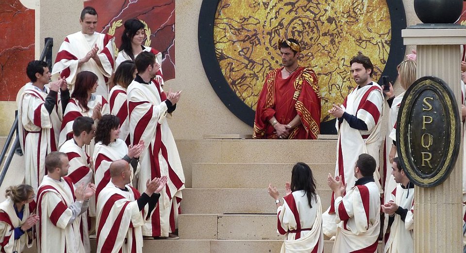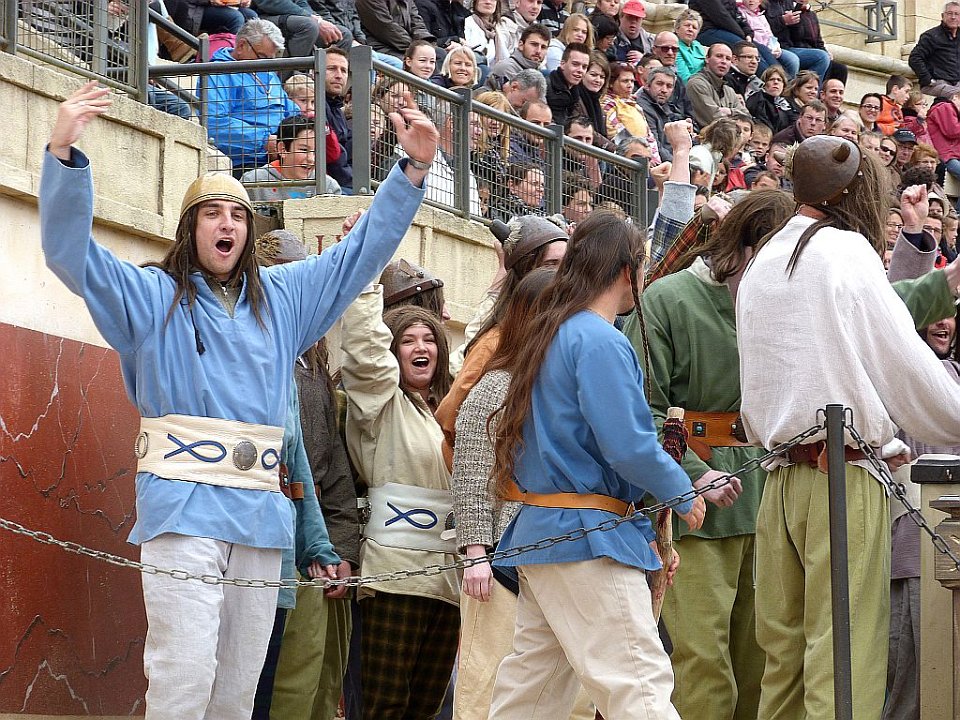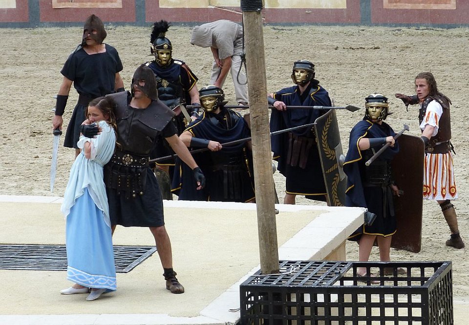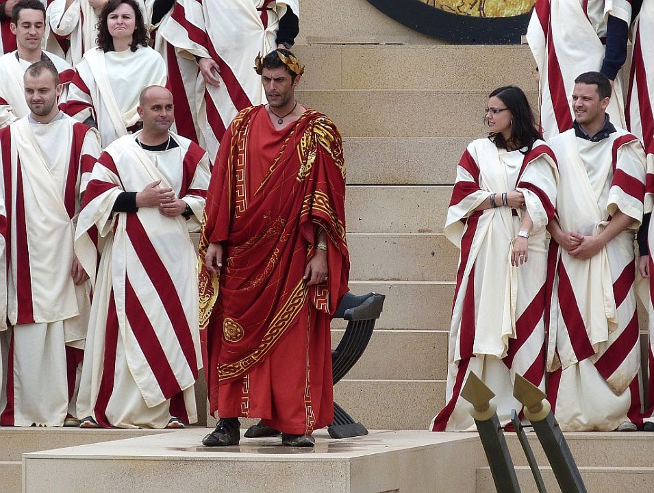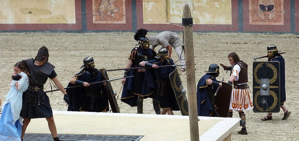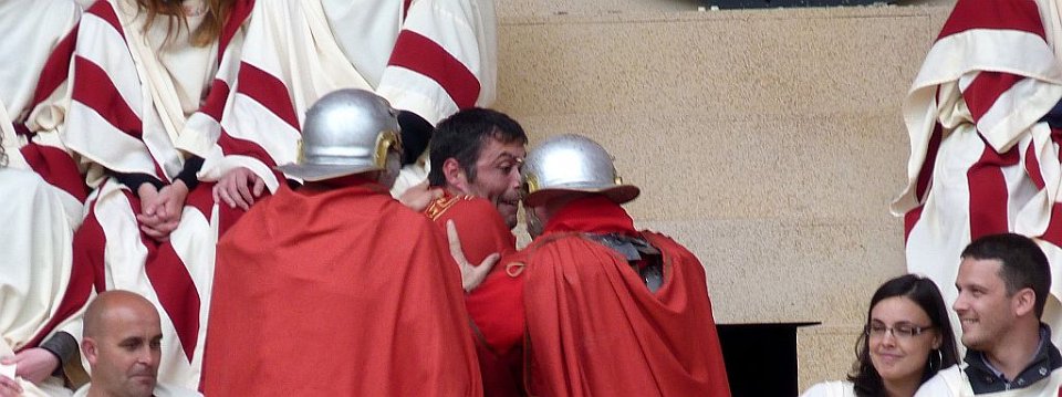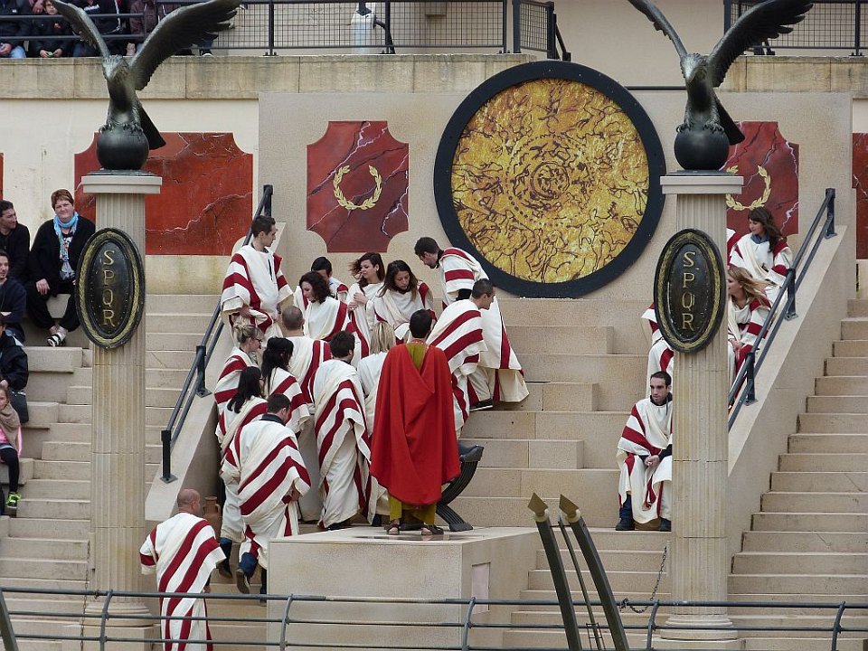 8 De l'autre les romains ;Quelques spectateurs grimés.