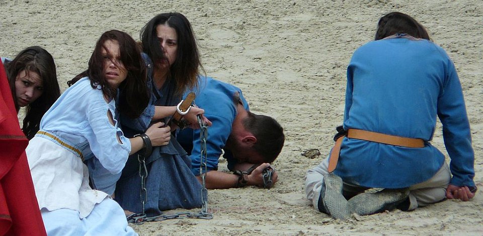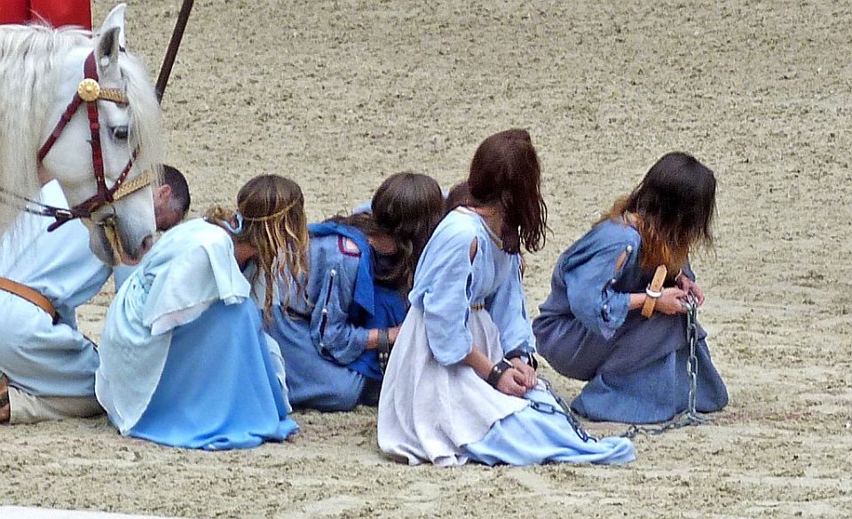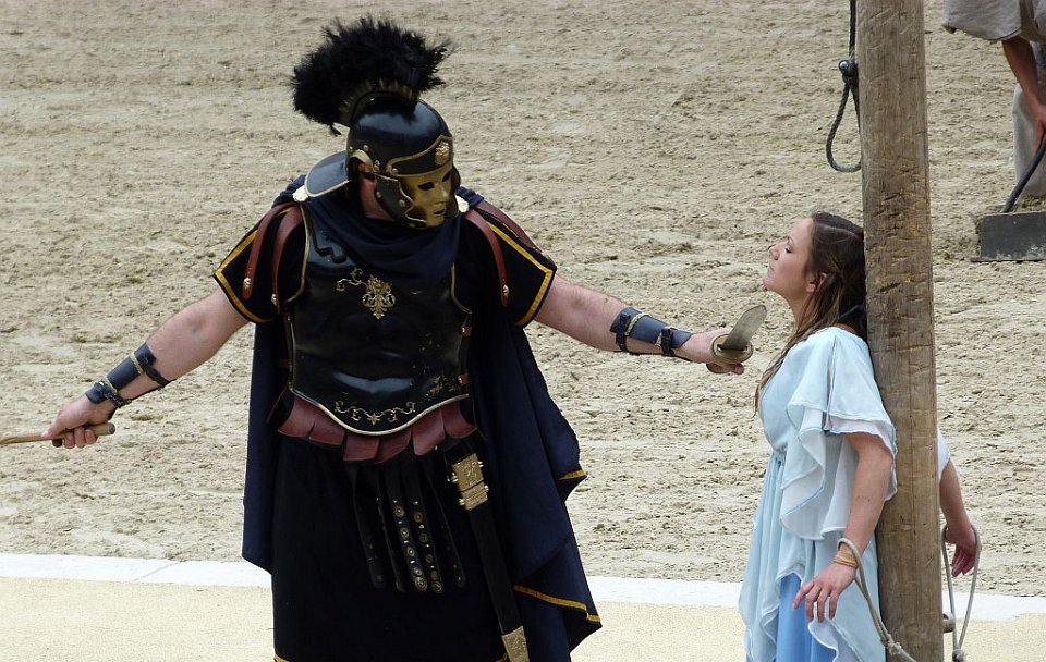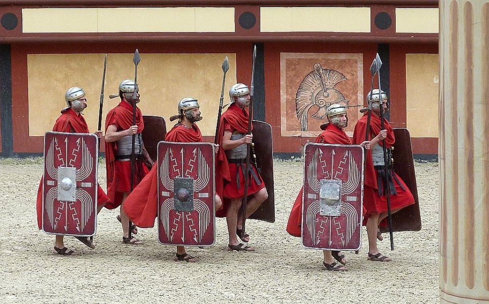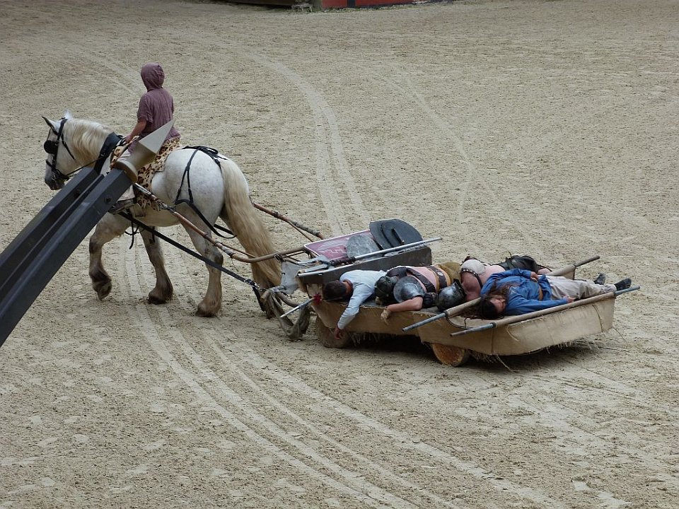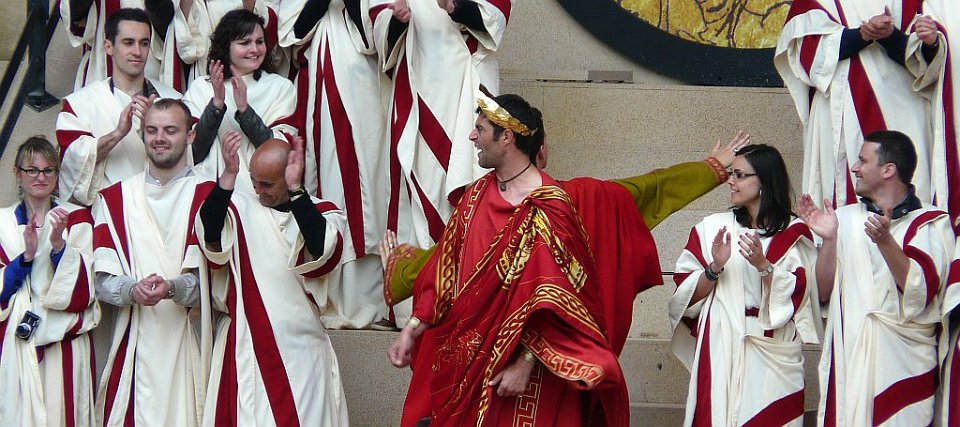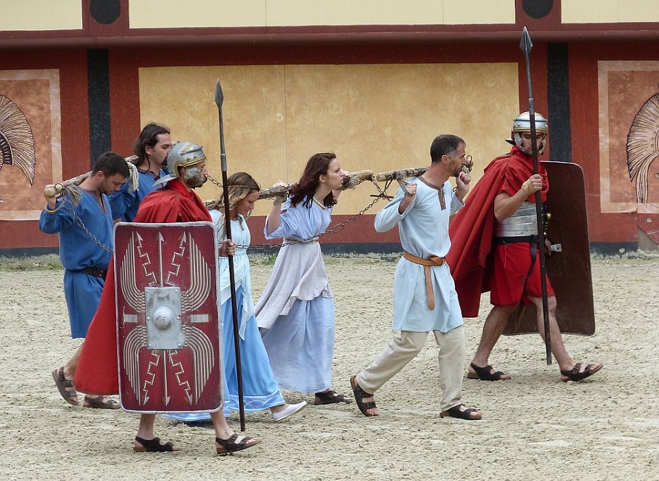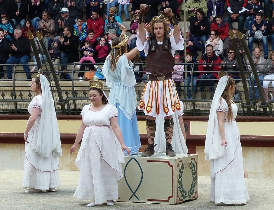 8 De l'autre les romains ;Quelques spectateurs grimés.