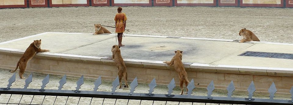 C'étaient de véritables chasses aux fauves : tigres, panthères, lions affamés sortaient des caves pour être mis à mort par le bestiarius après un "jeu" qui peut nous faire penser aux corridas. Ou bien, excités les uns contre les autres, ces animaux s'entretuaient à qui mieux mieux.