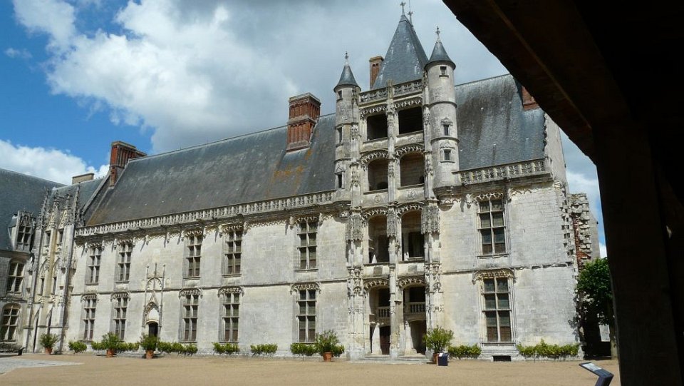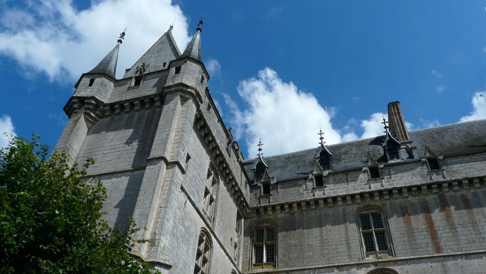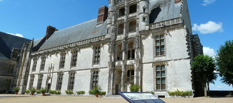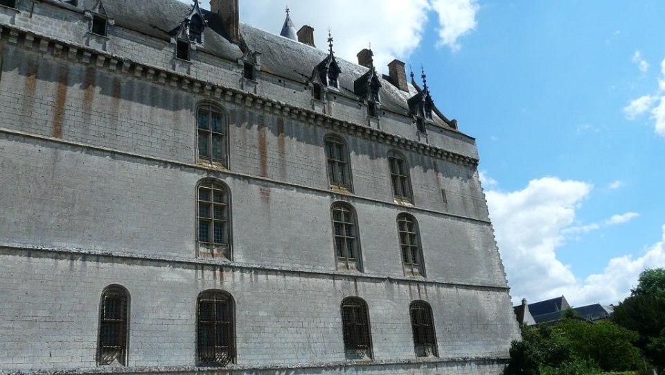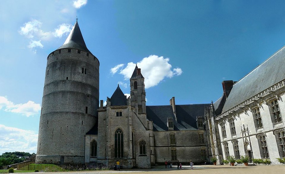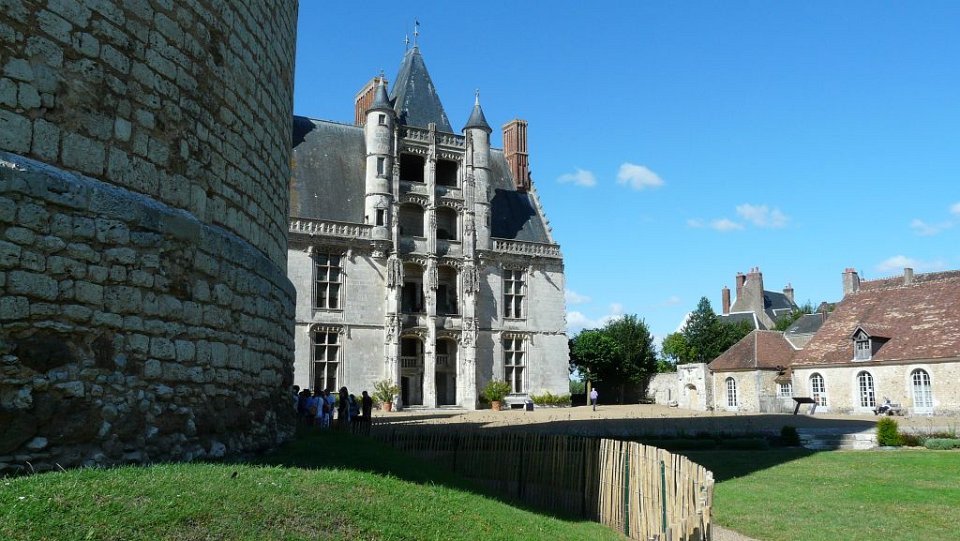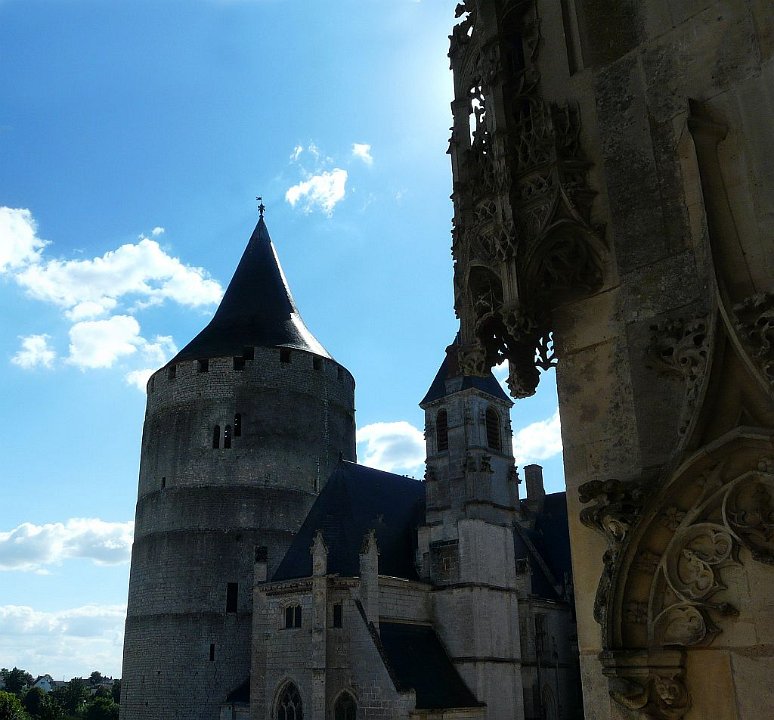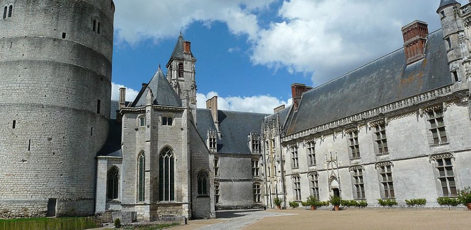 52 la seule pièce conservée.Le Château de Châteaudun est un château édifié entre le XIIe siècle et le XVe et XVIe siècles et qui est situé sur un éperon rocheux dominant la ville de Châteaudun et le Loir, dans le département d’Eure-et-Loir en France. Le donjon, bâtiment le plus ancien, a été construit vers 1180 par Thibaut V, comte de Blois. Jean de Dunois (1402-1468), bâtard de Louis Ier d'Orléans et compagnon de Jeanne d'Arc qui avait reçu le château en récompense de la libération de son demi-frère Charles d’Orléans, prisonnier des Anglais, le transforme en résidence en ajoutant un corps de logis de style gothique et la chapelle. Une deuxième aile de style Renaissance est ajoutée au XVIIe siècle.