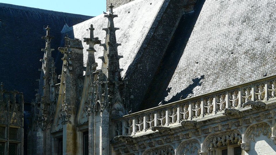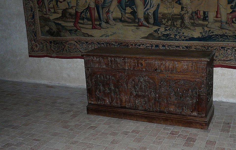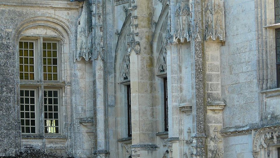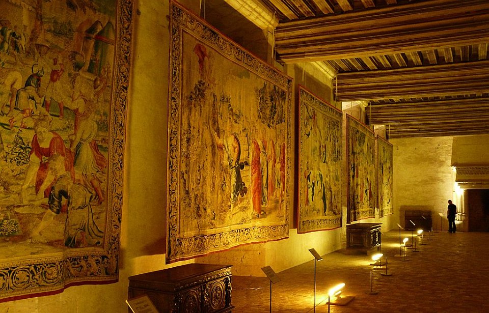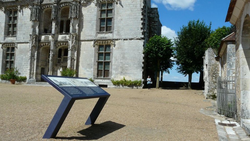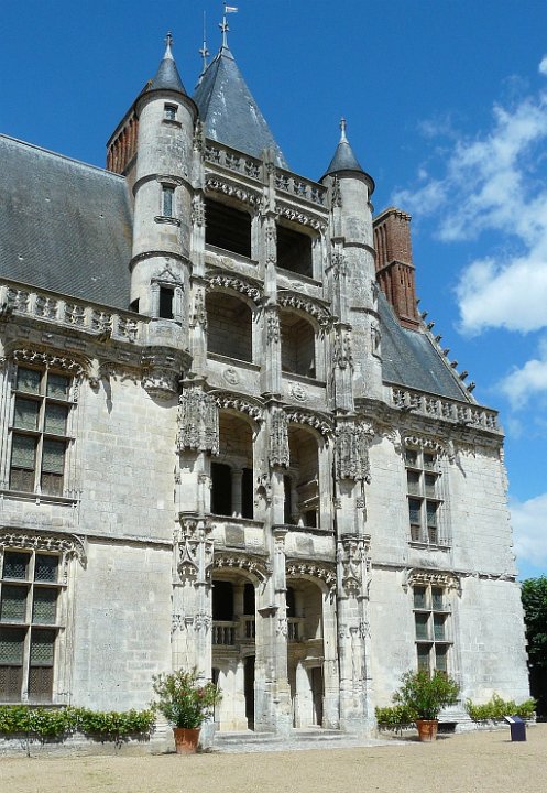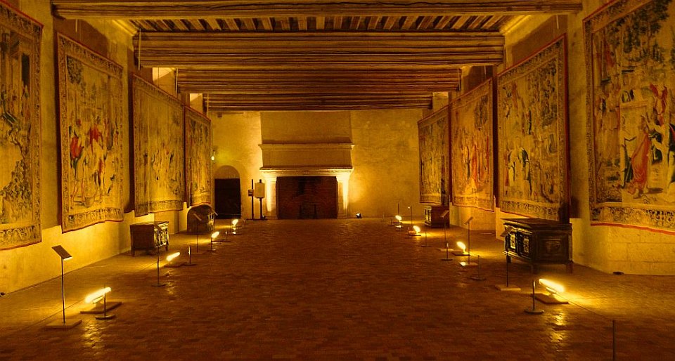52 la seule pièce conservée.Le Château de Châteaudun est un château édifié entre le XIIe siècle et le XVe et XVIe siècles et qui est situé sur un éperon rocheux dominant la ville de Châteaudun et le Loir, dans le département d’Eure-et-Loir en France. Le donjon, bâtiment le plus ancien, a été construit vers 1180 par Thibaut V, comte de Blois. Jean de Dunois (1402-1468), bâtard de Louis Ier d'Orléans et compagnon de Jeanne d'Arc qui avait reçu le château en récompense de la libération de son demi-frère Charles d’Orléans, prisonnier des Anglais, le transforme en résidence en ajoutant un corps de logis de style gothique et la chapelle. Une deuxième aile de style Renaissance est ajoutée au XVIIe siècle.