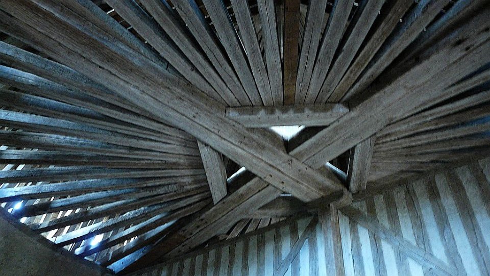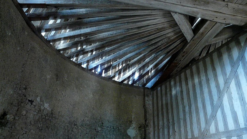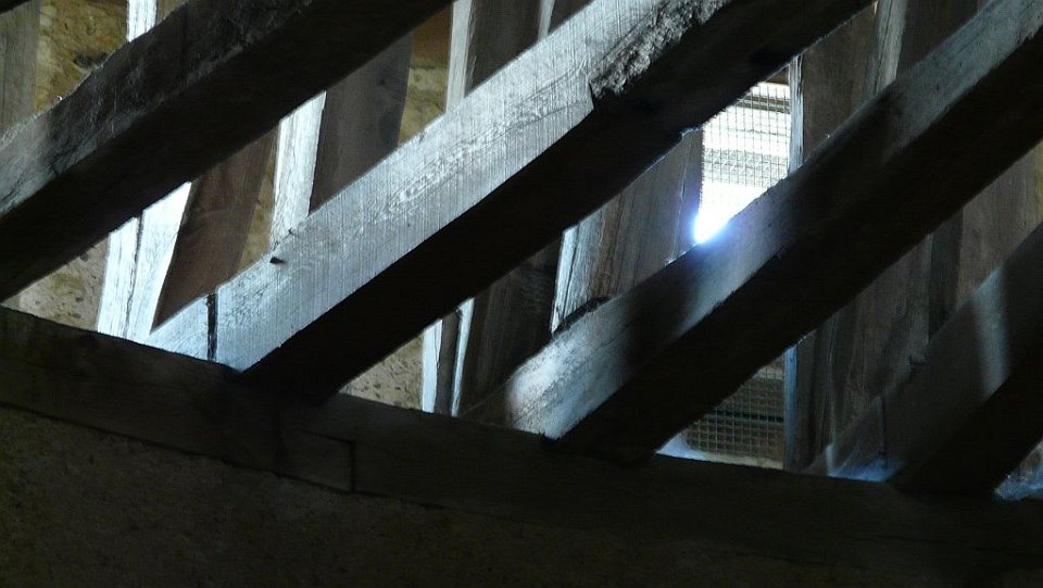 72 nous sommes dans la toiture de la chapelle ouvrant l'accès au donjon, ouf les cordes ont disparues.