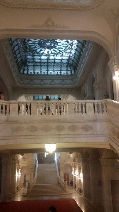 45 Sans doute, une visite du Palais du Parlement peut être comparée avec une promenade dans un univers du luxe extrême et dans un épisode historique dont l’ironie et la tragédie sont données par la disparité entre les desseins mégalomaniaques de Ceausescu et la destitution du peuple qui a enduré pour des décennies les caprices politiques, culturels et économiques du couple présidentiel le plus sinistre de la Roumanie.