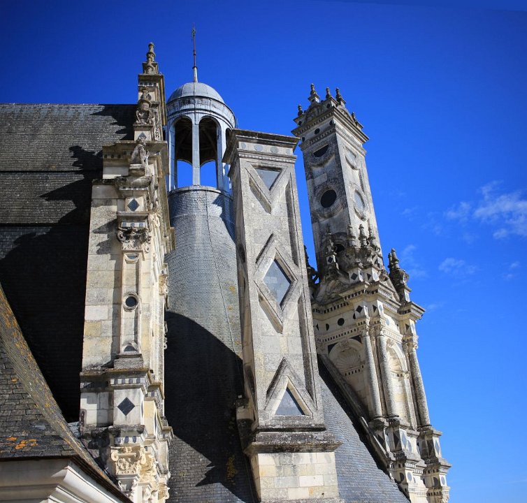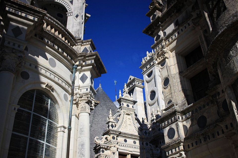 3 Donjon carré flanqué de quatre tours, puissamment ancré au sol , Chambord est un modèle de symétrie.
