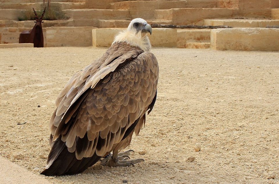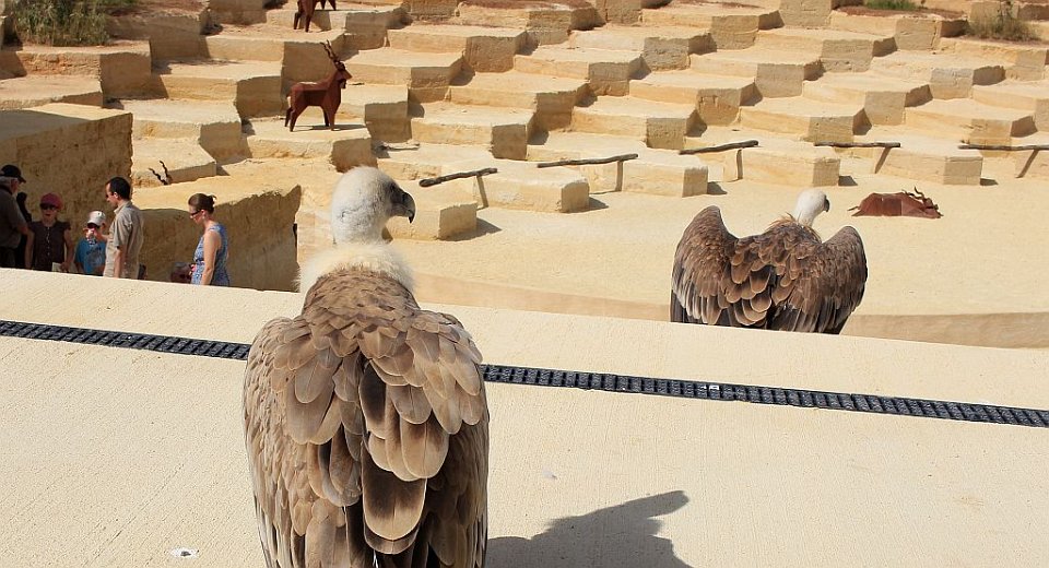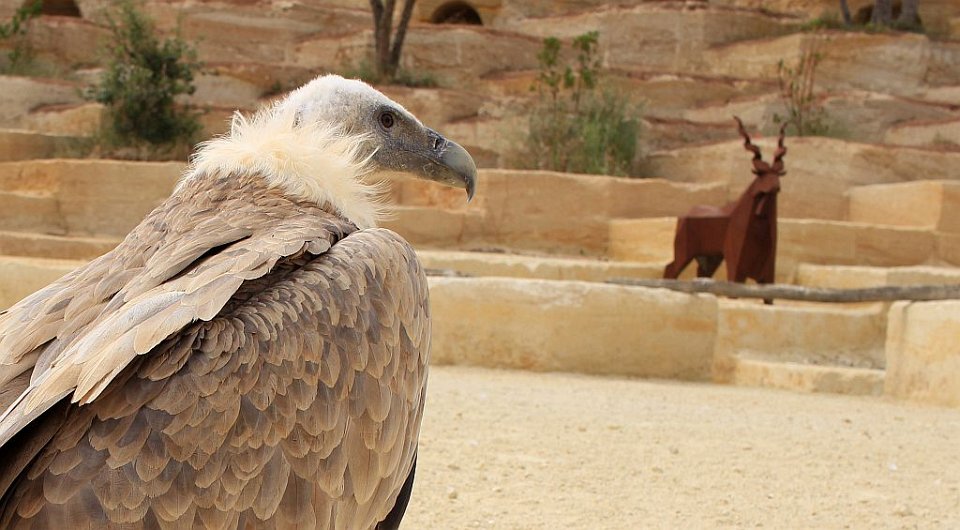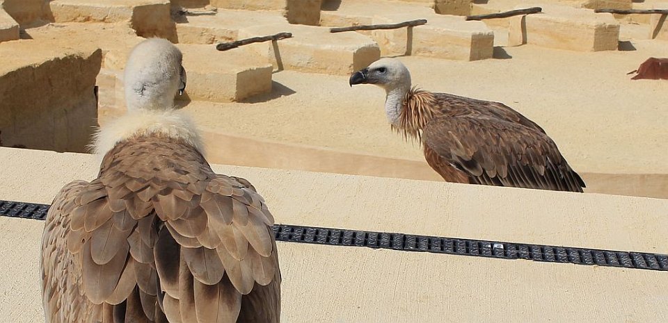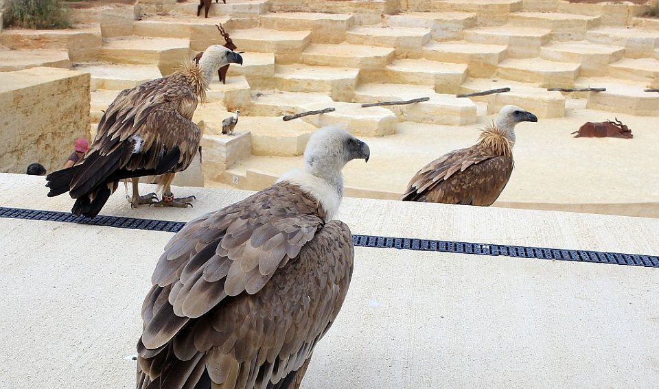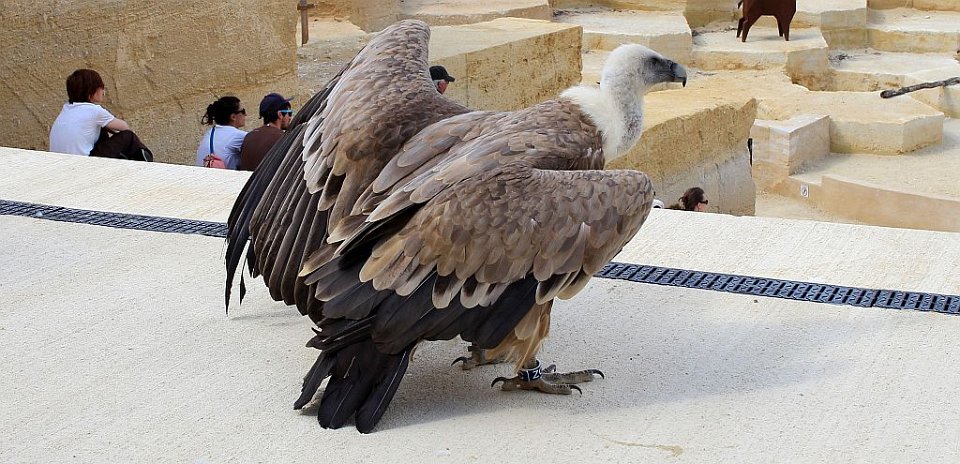 37 le vautour fauve : son attitude lors des curées est caractéristique. Une patte en l’air, le cou sorti bien détaché du reste du corps. Les ailes ouvertes et une démarche agressive lui permettent de faire savoir aux autres qu’il a faim.