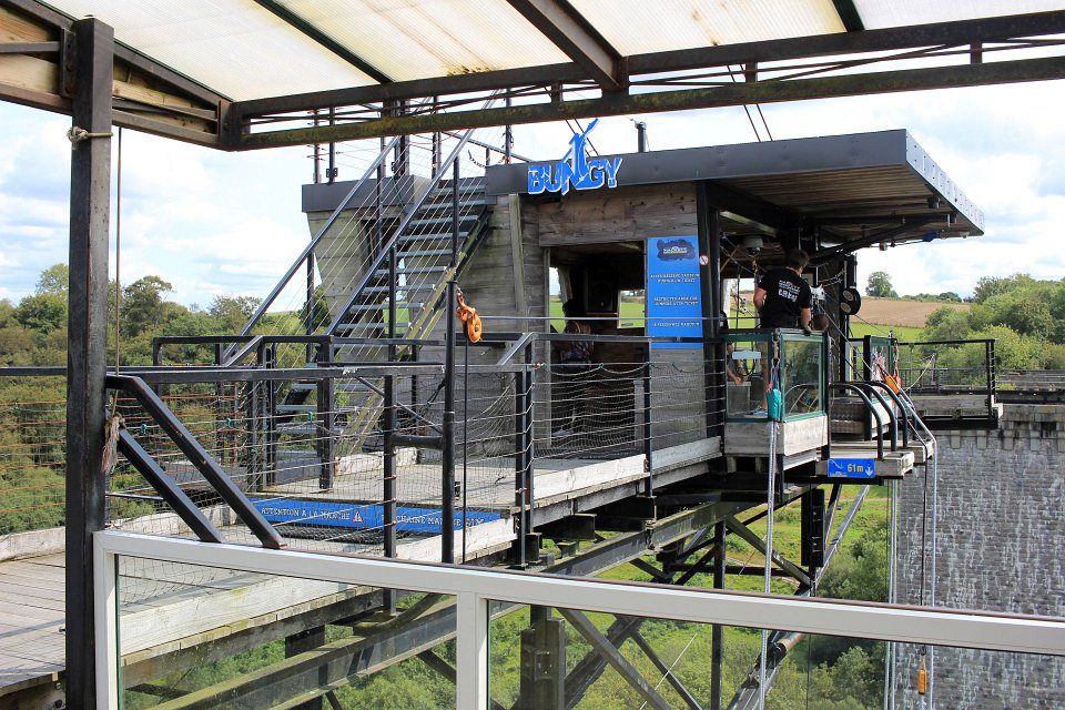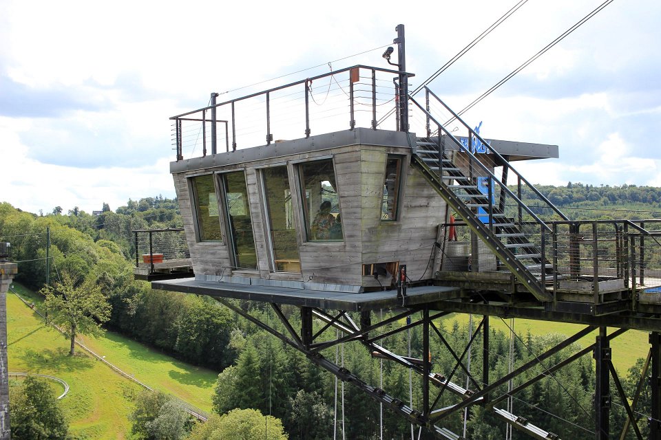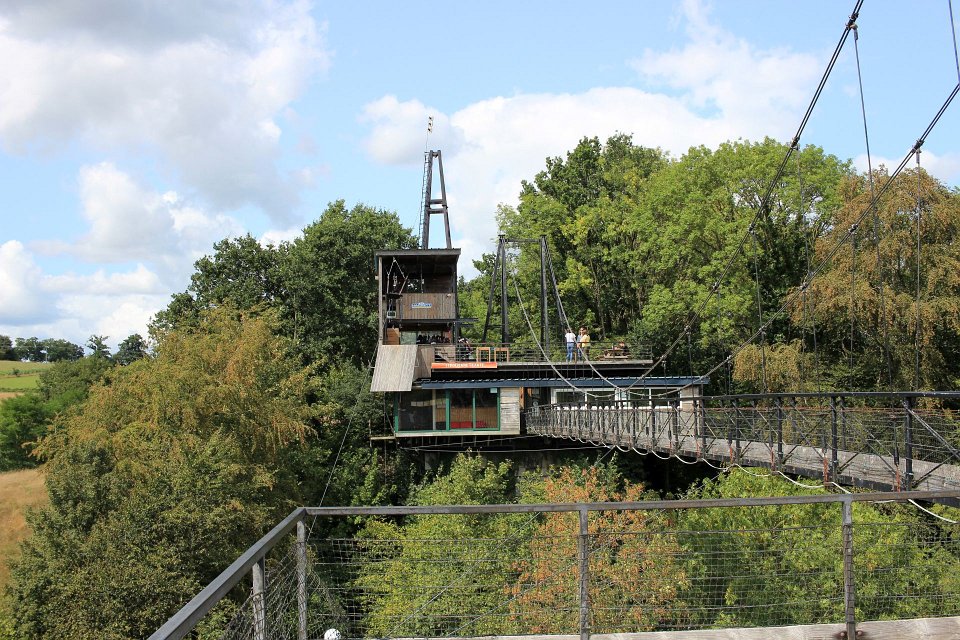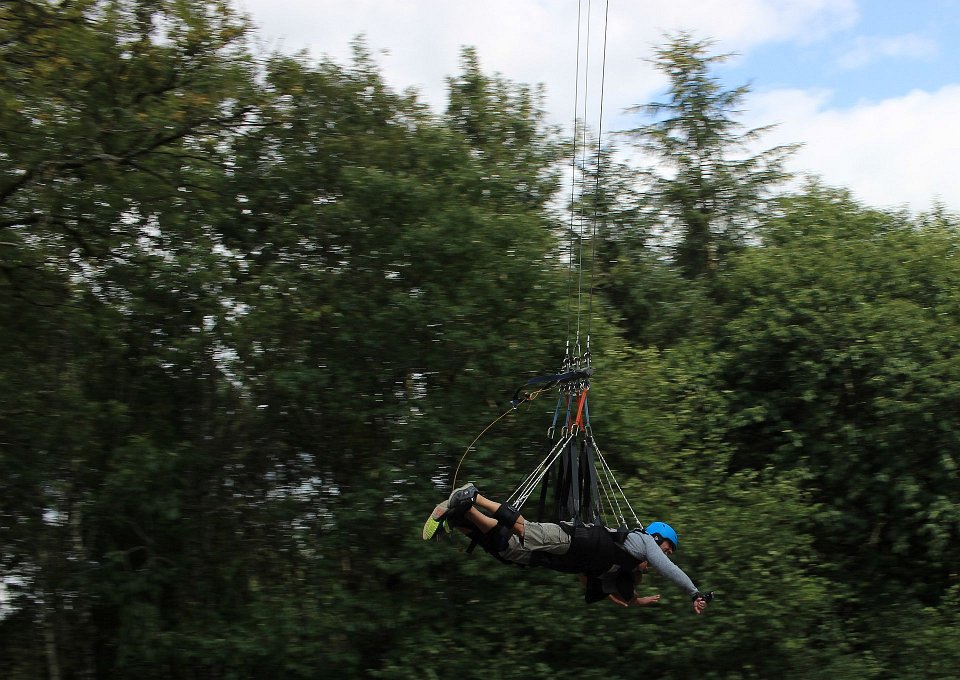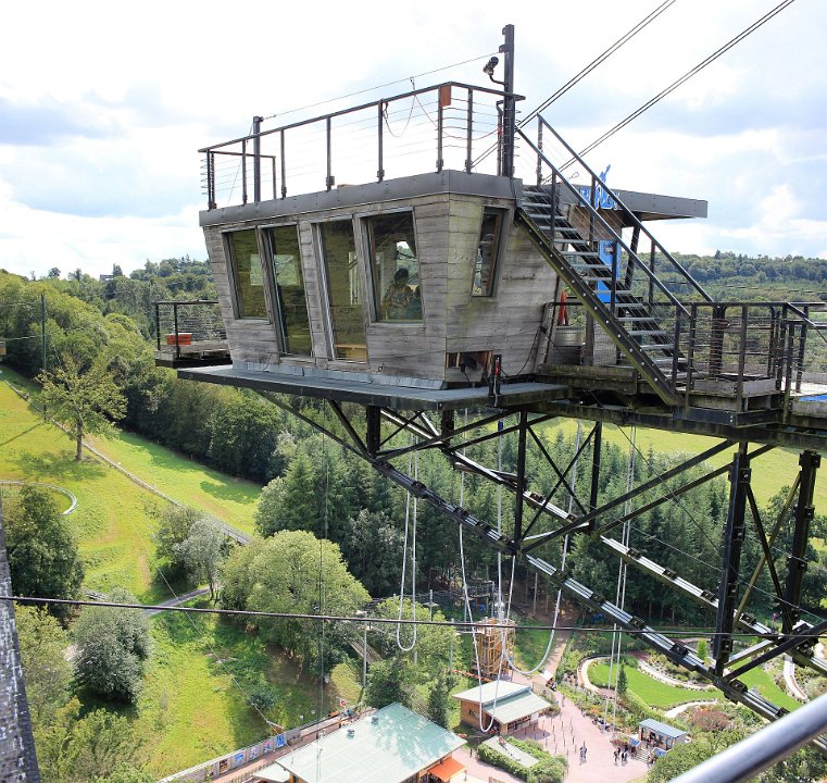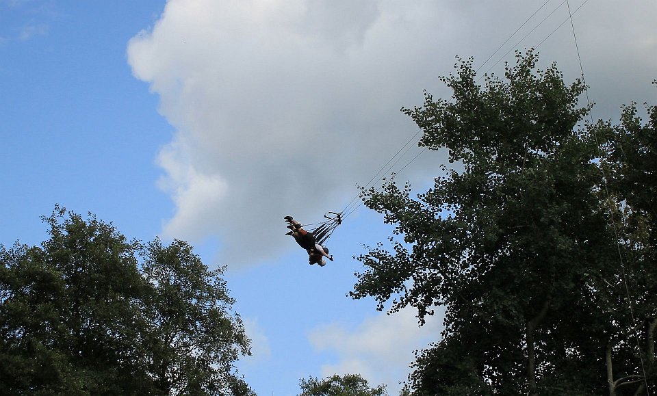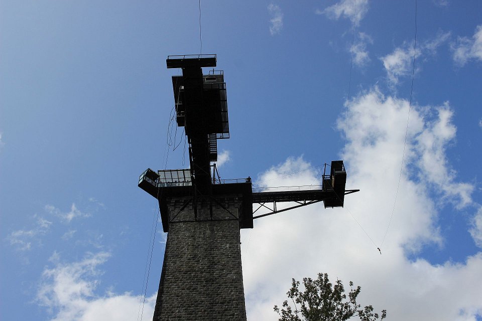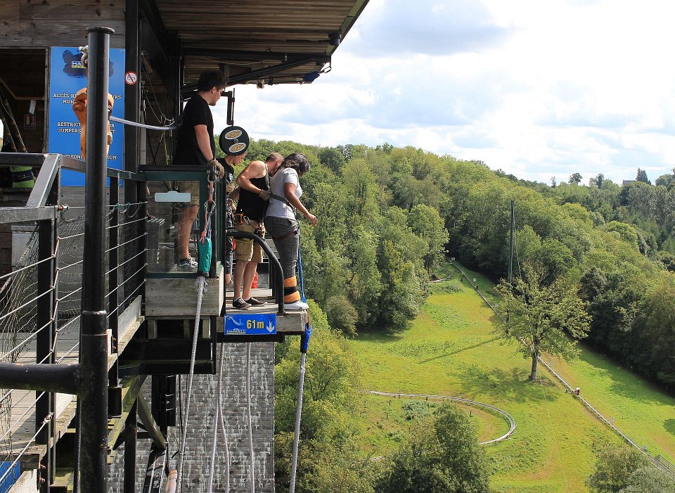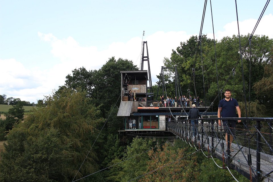 34 Le saut pendulaire extrême, dit "Top Swing", ajouté en 2009, partant cette fois depuis les 61 mètres du haut du viaduc, atteignant 130 km/h en 3,5 secondes sur un arc de 150 mètres.Au bout de la passerelle , on a déjà l'impression de flotter.