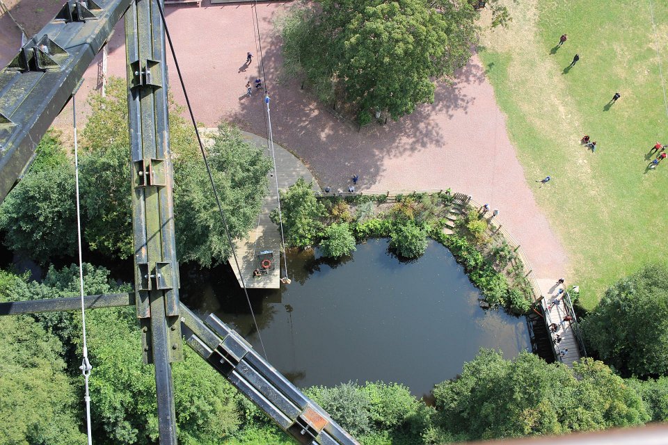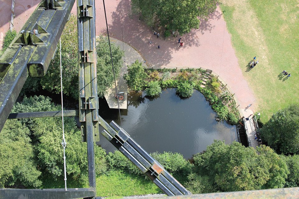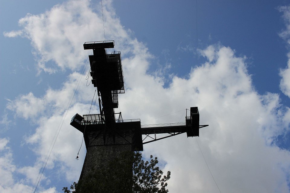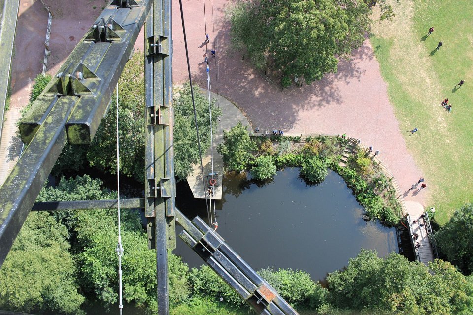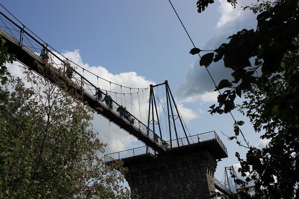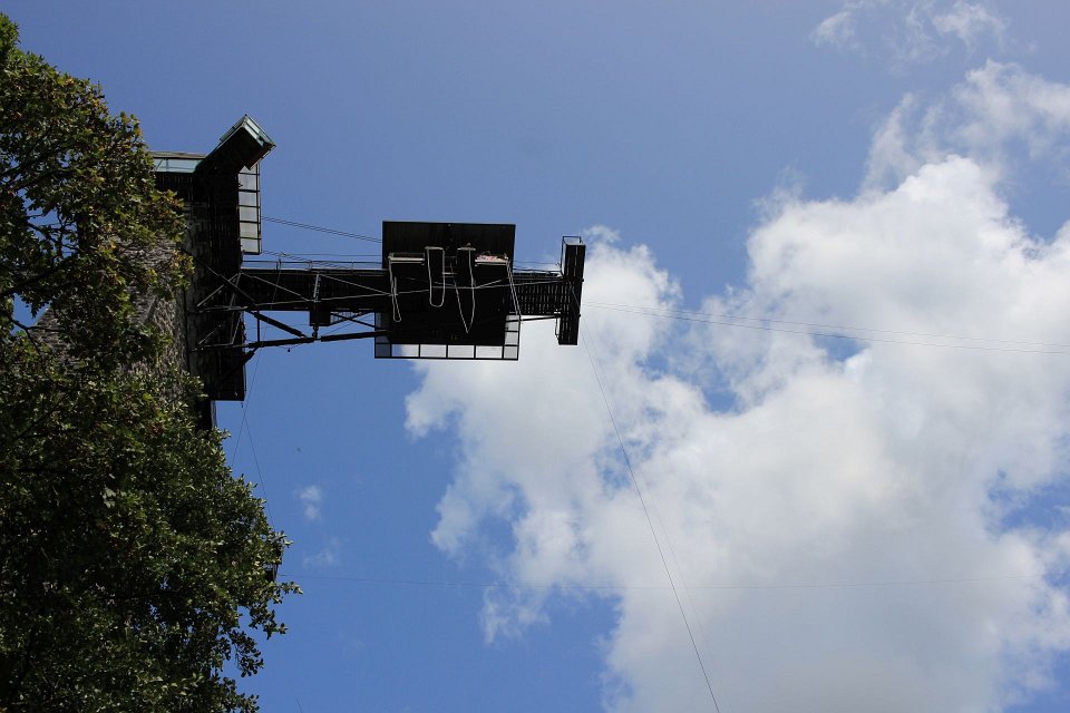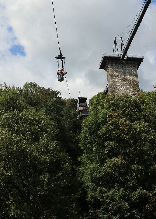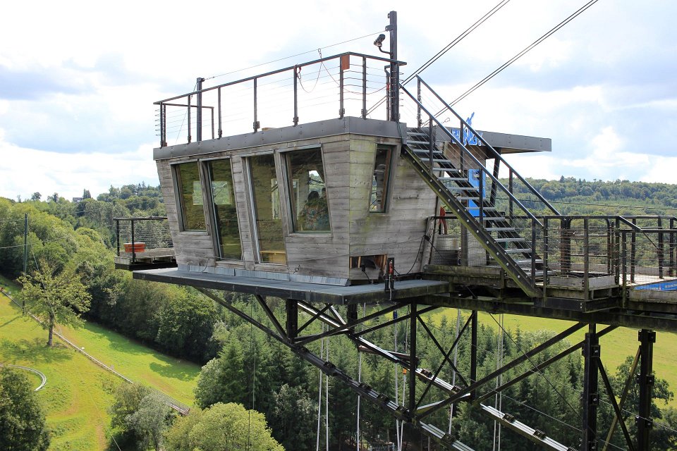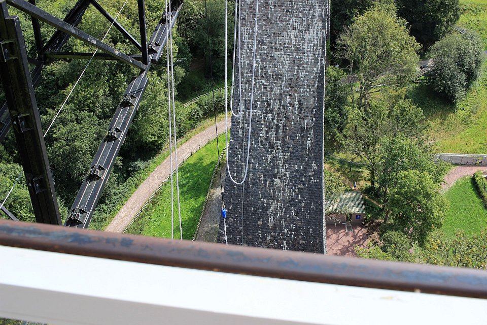 34 Le saut pendulaire extrême, dit "Top Swing", ajouté en 2009, partant cette fois depuis les 61 mètres du haut du viaduc, atteignant 130 km/h en 3,5 secondes sur un arc de 150 mètres.Au bout de la passerelle , on a déjà l'impression de flotter.