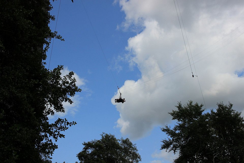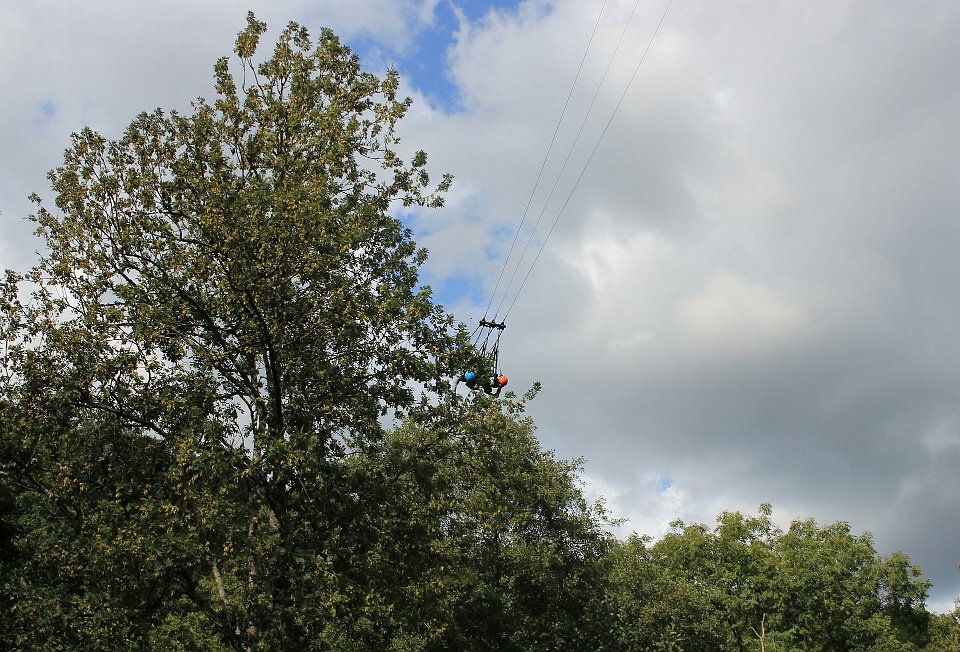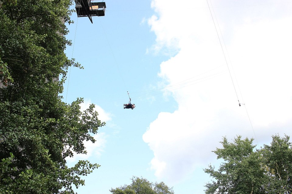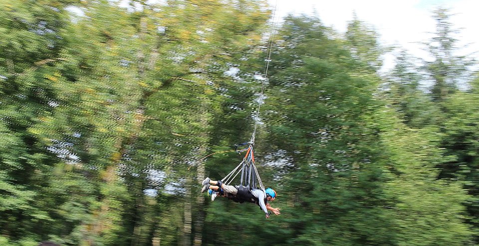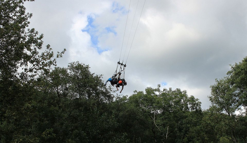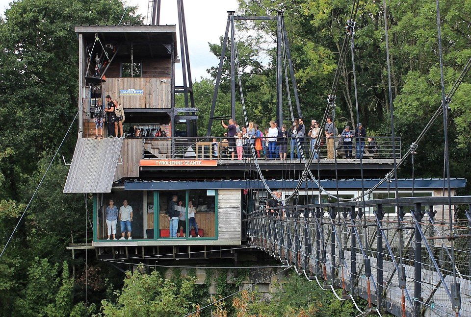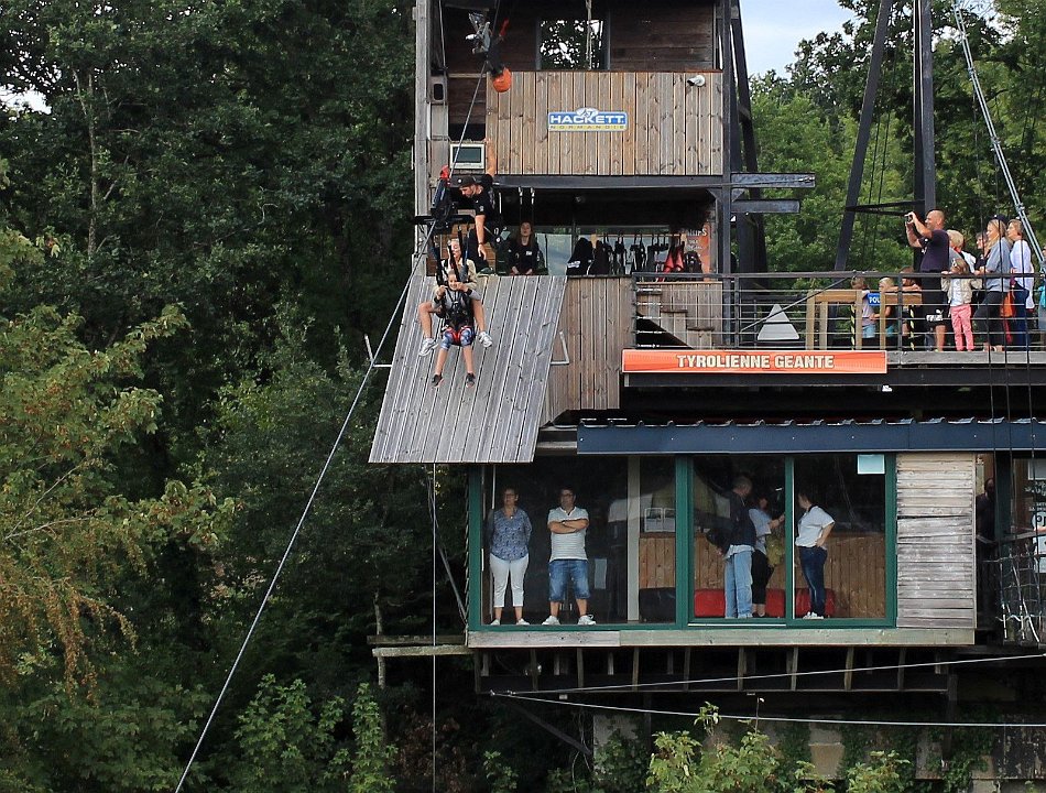 3 Si le coeur vous en dit : la deuxième est en promo. = Rum balabum balabum bam bam .La tyrolienne géante, baptisée "Scable" et installée en 1999, proche de par sa pente d'une Taggle rope, sur une longueur de câble de 400 mètres en pouvant atteindre 100 km/h, mais restant toutefois plus douce que le saut à l'élastique ou pendulaire, constituant un bon compromis pour une première expérience.