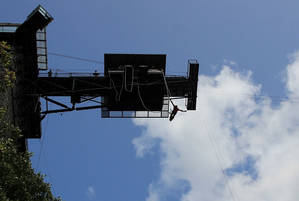 33 Je vois un autre truc à gauche.Le saut pendulaire, baptisé "balançoire géante" ou "Swing", depuis 2008, où un à trois passagers sont suspendus sur une sorte de trapèze montant presque jusqu'à hauteur du viaduc, puis chutant en balancier en tirant une poignée.