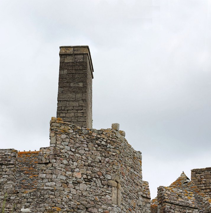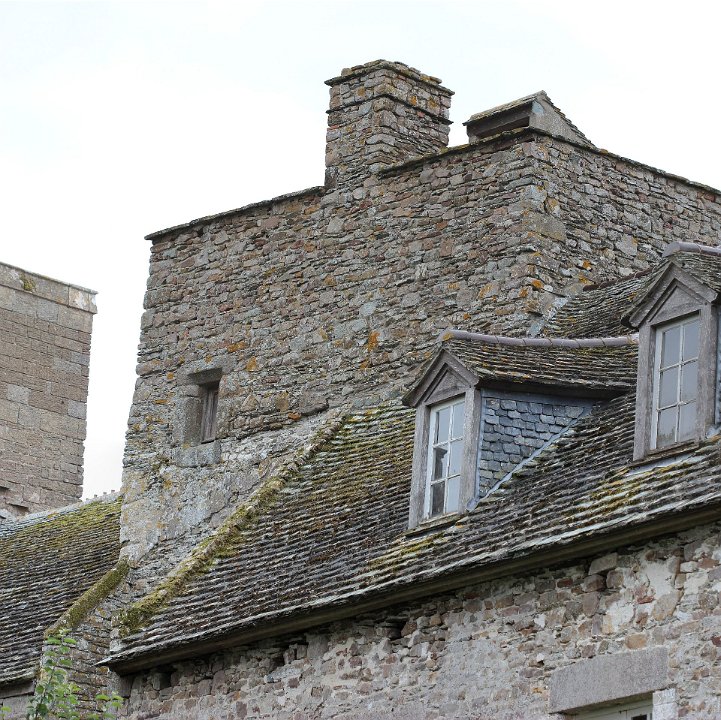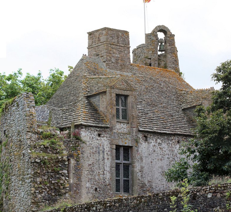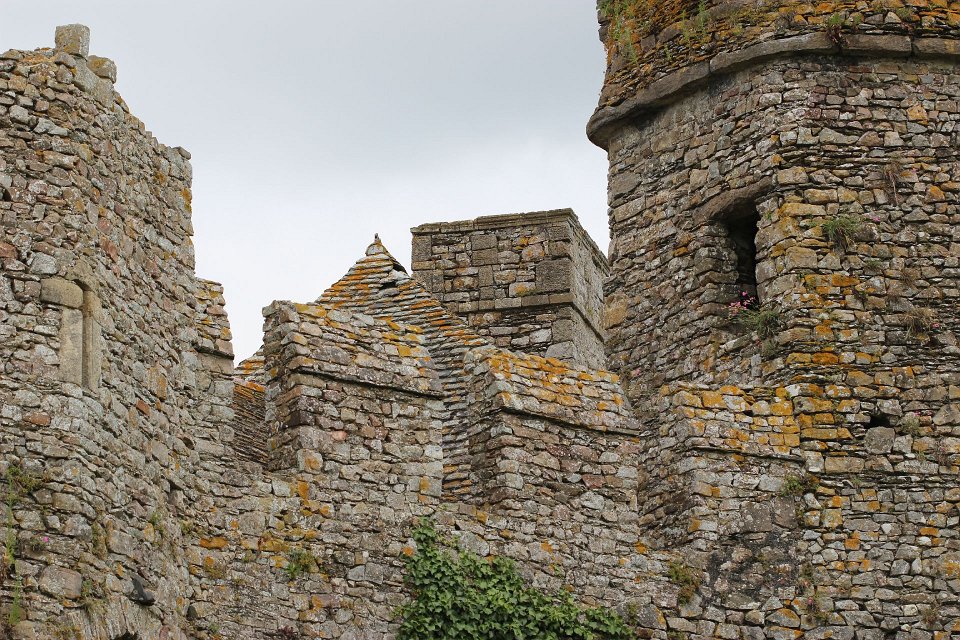 44 Une fois à l'intérieur, outre la tour carrée du XVe, on découvre deux logis plus récents en équerre adossés à la muraille.Voilà , on entend encore les légendes dans le lointain Cotentin : le chant des druides.