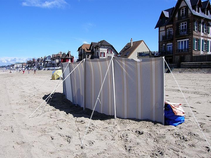 | Le lendemain, il fait beau mais le paravent est de sortie.Par ailleurs, la plage a retrouvé sons aspect et sa fréquentation normale.Nous retrouvons notre espace. | |
