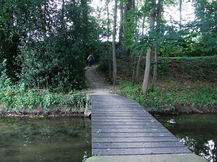 | La passerelle surplombant le laizon qui traverse le parc et en alimente les canaux. | |