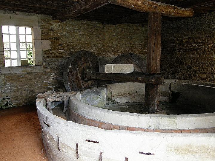 | La visite commence , comme partout en Normandie, par le pressoir, l'auge et la roue en granit. | |