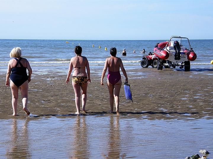 | Une marche est organisée spontanément pour aller retrouver le quai d'embarquement. Comme dans les aéroports , la piste d'envol est balisée de jaune. | |